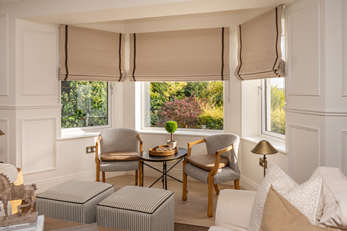 At Five Star Curtains, we design Roman blinds specifically to the size of your window,s as well as your style of interior and your personal style. Not generic, off-the-shelf items.
